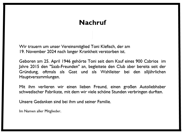 Bleibt gesund und haltet uns und Eurem Saab die Treue.