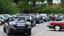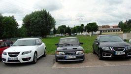 35 Saab´s machten sich auf die Reise in das wunderschöne Sachsen, in die Stadt Dresden. Fast alle Modelle waren vertreten. Von dem Baujahr 1978 bis zum Baujahr 2011. 15 Autos reisten schon am Donnerstag an. Und prompt steckten sie in dem 17 Kilometer langen Stau vor Dresden fest. Durch diesen Stau kamen viele Enthusiasten erst gegen 18:00 Uhr an, obwohl das Navigationssystem 16:00 Uhr voraus gesagt hatte. Ansonsten war die Reise nach Dresden recht angenehm. Nur der Saab 9-3 SportSedan von Derek und Louise erlitt in der Schweiz, aus Spanien kommend. einige Blessuren, zum Glück nur Blechschäden. Mit einem Ford C-Max als Leihwagen konnten sie die Fahrt zum Treffen fortsetzen, wo sie freundlichst empfangen wurden. Der Saab wird nun nach Spanien transportiert und dort repariert. Der Saab 9-3 von Gesche hatte leider Wassereinbruch im Kofferraum und wechselte daher zu Michaels Wohnmobil, nicht ohne den FIAT Ducator zum Saab zu stylen.
