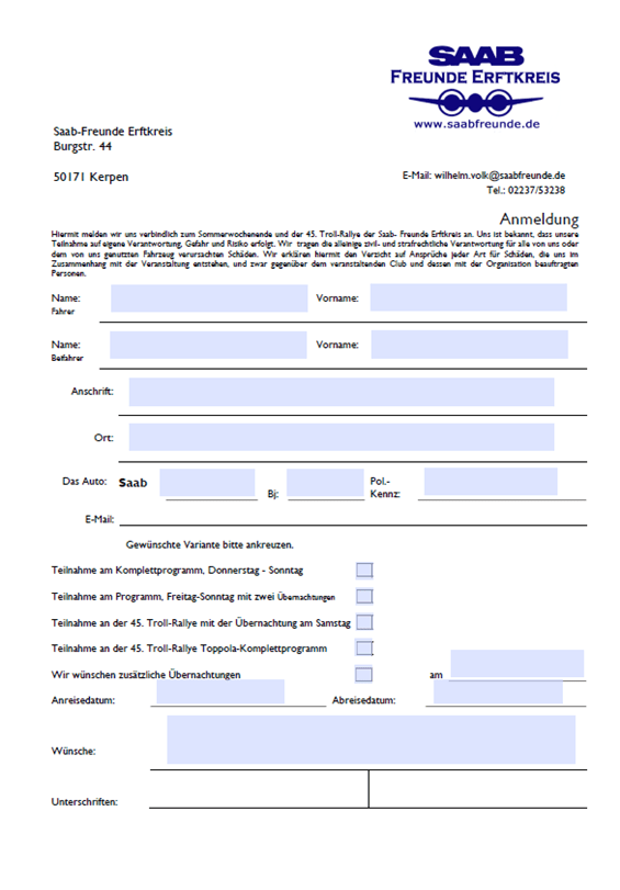 Tel.: 02237 53238, mobil: 0177 3519594 oder per E-Mail unter: wilhelm.volk@ saabfreunde.de