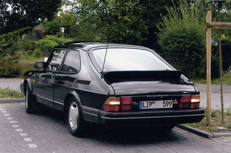 Inzwischen lenkt Gerhard seinen Neunten Saab, einen 3türigen Einspritzer, mit dem seltenen 2,1 Liter Motor B212, der in Malmö 1991 produziert wurde. Mit der installierten Turbo- Auspuffanlage, von einem Saab-Turbo klanglich kaum zu unterscheiden.